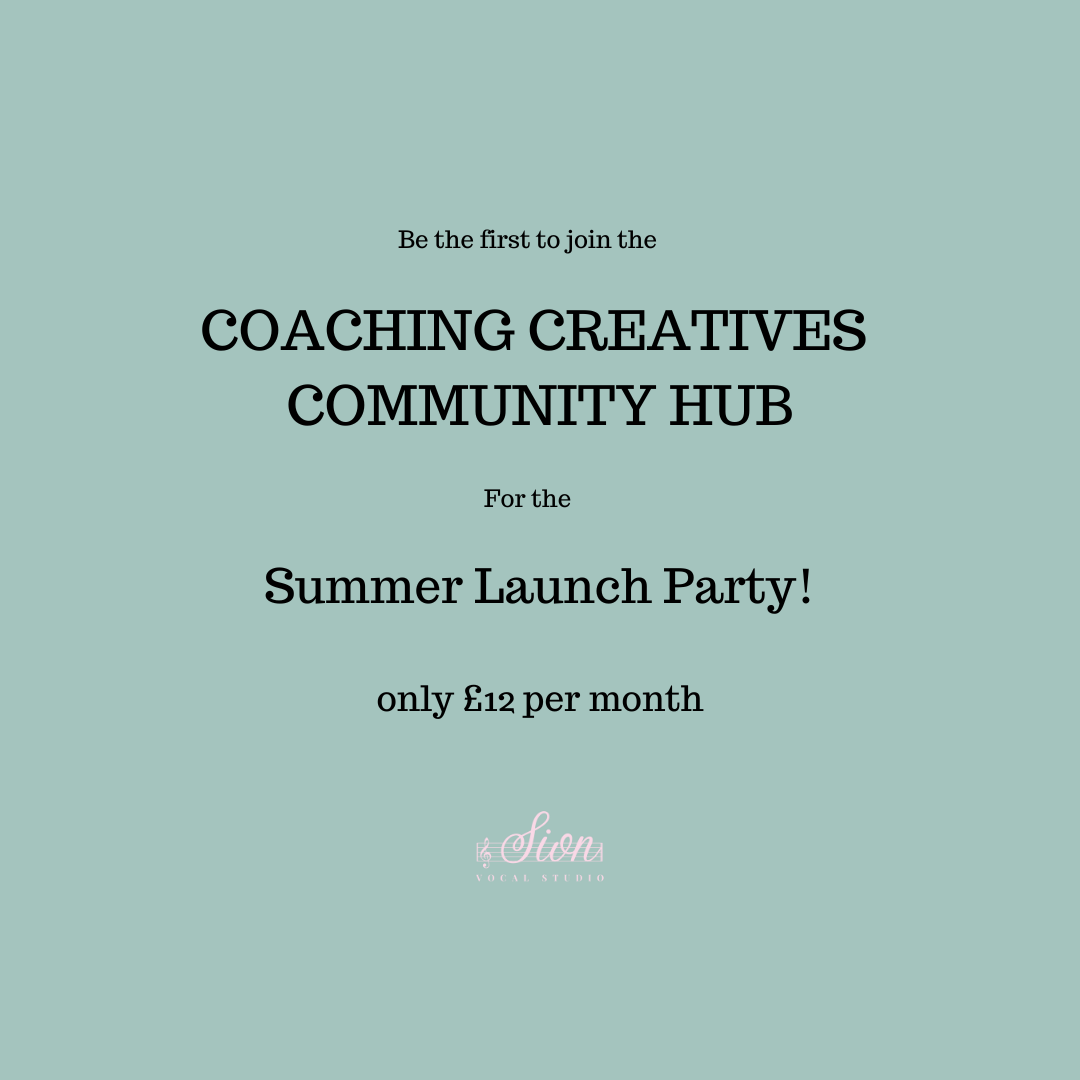 The Coaching Creatives Hub - A Community Membership. A safe and powerful space for you to share your dreams with others. Be kept accountable with your goal setting within The Accountability Club. Celebrate your wins and access the The Vocal Hub, a library of Vocal Exercises.